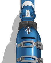 The back of the binding will release the ski boot upwards if there is a large forward force on the boot. The tension for this release setting is displayed and set on the heel housing.