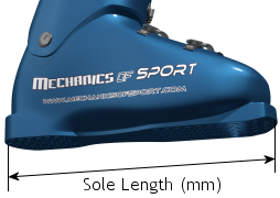 Your ski boot sole length does not affect the fit of your ski boot, but it does affect your ski bindings. The toe and heel sections of the boot are made to set dimensions, but the distance between them can change. The overall length of the ski boot sole is what your ski binding needs to be set for, so that your boot will be held correctly by the binding. The length of the sole is normally written on the boot, somewhere on the side of the sole, with a measurement in millimetres (mm). Your bindings should be adjusted for your boots by a technician in a shop.