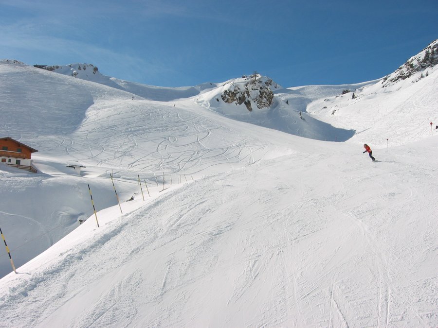 If it is cold and has not snowed for a while, the pistes will start to get quite icy, this is because skiers and snowboarders keep going over the same layer of snow compacting it more and more until it becomes very solid. Most skiers and boarders do not like ice as they can not dig their edges into it very well, and have very little control. However if the ice is all smooth, and there is plenty of room, ice can be a lot of fun, and the ultimate piste condition for speed skiing.